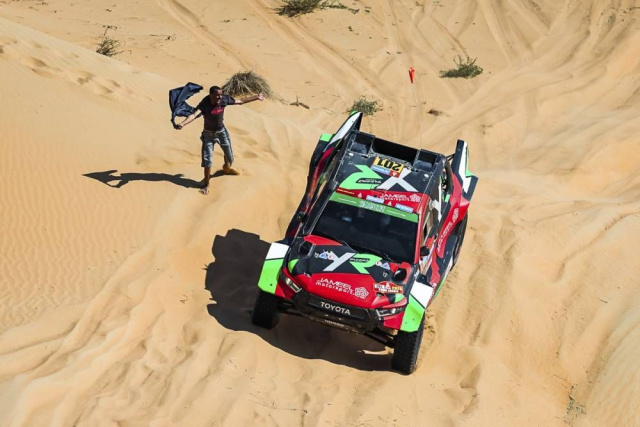 Die Etappe führte von Al Duwadimi aus in eine weite Schleife im Südwesten der Stadt und bot herrliche Ausblicke auf die Provinz Riad. Nach der gestrigen Entscheidung, die Strecke um einige Kilometer zu verkürzen, erstreckte sie sich über 410 km. Schnelle Abschnitte auf Kalksteinplateaus wichen allmählich den Dünen, die die Landschaft auf der Strecke dominierten. Lucas Moraes, der als 27. gestartet war, nutzte die Gelegenheit und stürmte zum Sieg, während der erbitterte Kampf um die Spitze zwischen Henk Lategan und Yazeed Al Rajhi weiterging.