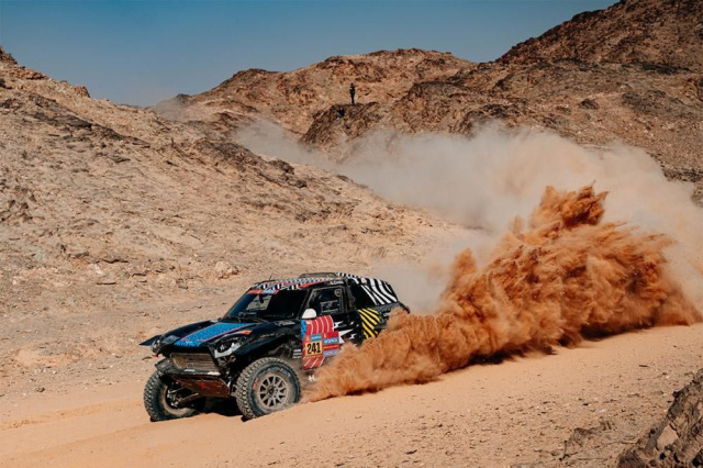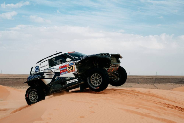 Henk Lategan ist ein Wiederholungstäter: nicht nur, weil er seine zweite Etappe der Rallye gewonnen hat, sondern auch, weil er in Riad siegte, wo er auch die Bestzeit 2022 erzielte. Die Top Drei des Tages komplettierten sein Teamkollege und Landsmann Guy Botterill (1'47'' Rückstand) und Mathieu Serradori mit 4'04'' Rückstand.