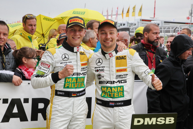Aus der zweiten Startreihe kam Indy Dontje (24, Alkmaar/NL) sauber durch die turbulente erste Runde und hielt den in MANN-FILTER-Farben designten Mercedes-AMG GT3 mit der Startnummer 48 bis zum obligatorischen Fahrerwechsel sicher auf Rang drei. Ebenso souverän fuhr Teamkollege Marvin Kirchhöfer (23, Leipzig) in seinem Stint den zweiten Podestplatz des niederländisch-deutschen Duos in dieser Saison nach Hause. „Das war ein sehr gutes Rennen“, freute sich Dontje. „Ich kam am Start gut durch und gewann direkt eine Position. Anfangs hatte ich etwas Druck von hinten, konnte mich aber nach einigen Runden lösen. Nach dem Boxenstopp hat Marvin das Rennen souverän nach Hause gefahren. Mein Dank gilt dem gesamten Team. Und natürlich unseren griechischen Gästen. Jetzt ist Ouzo Time ...“