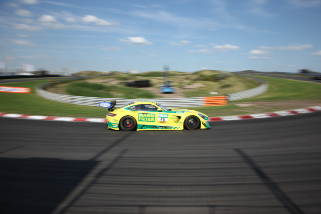 Für sein Heimrennen hatte der Niederländer Indy Dontje extra für alle vier HTP-Fahrer maßgefertigte Klompen, also die berühmten Holzpaninen, mit Logo, Startnummer und Namenszug anfertigen lassen. Und diese Aufmerksamkeit schien ihm Glück zu bringen! Vom sechsten Startplatz aus kehrte Dontje am Samstag als Fünfter aus der ersten Runde zurück und übergab die gelb-grüne „MANN-FILTER-Mamba“ Boxenstopp-bereinigt auf Rang vier an seinen Teamkollegen Kirchhöfer, der die starke Vorstellung des Kollegen fortsetzte, kurz vor Schluss noch vom Reifenschaden eines Kontrahenten profitierte und als bestplatzierter Mercedes-Pilot auf Schlussrang 3 abgewunken wurde. Kleiner, aber in diesem Fall gerne in Kauf genommener Wermutstropfen: Reglementgemäß mussten Dontje/Kirchhöfer im zweiten Lauf am Sonntag zehn Extra-Kilogramm Erfolgsballast in ihrem Mercedes-AMG GT3 mitführen.