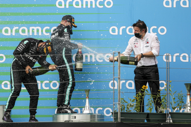 Es ist klasse, den ersten Triple-Header der Saison mit unserem dritten Saisonsieg abzuschließen und damit unsere Führung in beiden Weltmeisterschaften auszubauen. Das war heute erneut eine Meisterleistung von Lewis. Er kontrollierte das Rennen vom Start bis ins Ziel und fuhr einen ausreichenden Vorsprung heraus, um gegebenenfalls auf die ungewisse Wettersituation und die Gefahr von Safety Cars reagieren zu können. Für Valtteri war es ein schwierigerer Nachmittag. Er legte beinahe einen Frühstart hin, zog aber rechtzeitig die Kupplung und konnte dies so verhindern. Das kostete ihn jedoch viel Zeit und so fand er sich am Ausgang von Kurve 1 auf Platz sieben wieder. Valtteri entschied sich zuerst dazu, auf Trockenreifen zu wechseln. Das war die richtige Entscheidung, aber er steckte danach hinter Charles fest und verlor dadurch etwas von seinem Vorteil gegenüber jenen Fahrern, die länger draußen geblieben sind. Lewis musste kein Risiko eingehen und fuhr noch eine weitere Runde, bevor er zu seinem Stopp hereinkam. Valtteri zeigte gute Manöver gegen Charles sowie die beiden Haas-Piloten, aber danach drehte sich gegen Rennmitte am Kommandostand alles um das Wetter. Wir sahen sehr langsam einen Regenschauer auf uns zukommen. Aber es sah so aus, als ob er nicht lange dauern und auch nicht stark genug für Intermediates sein würde. Bei Valtteri nutzten wir diese Gelegenheit, um einen Undercut gegen Lance umzusetzen. So konnten wir ihm kurz vor dem Regen frische Reifen aufziehen. Das funktionierte wunderbar und er konnte in der Folge die Lücke zu Max immer weiter schließen. Sein Zusatzstopp war ein Wagnis und es ist schade, dass es nicht aufgegangen ist. Aber es brachte keinen Nachteil mit sich, es zumindest zu versuchen. Bei Lewis hatten wir den Vorsprung, um auf die Stopps der anderen Fahrer zu warten. Danach achtete er bis ins Ziel auf das Auto und die Reifen. Das Auto war das gesamte Wochenende über stark, gut in den Kurven sowie auf den Geraden und es gab keine Zuverlässigkeitsbedenken. Es ist großartig, dass die Formel 1 endlich in die Saison starten konnte und so sehr wir uns auf einige Tage Zuhause freuen, so gespannt sind wir darauf, in zwölf Tagen in Silverstone wieder auf die Strecke zu gehen.