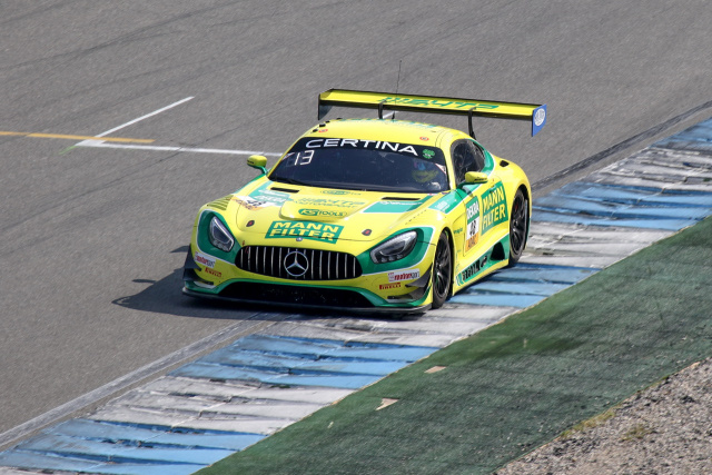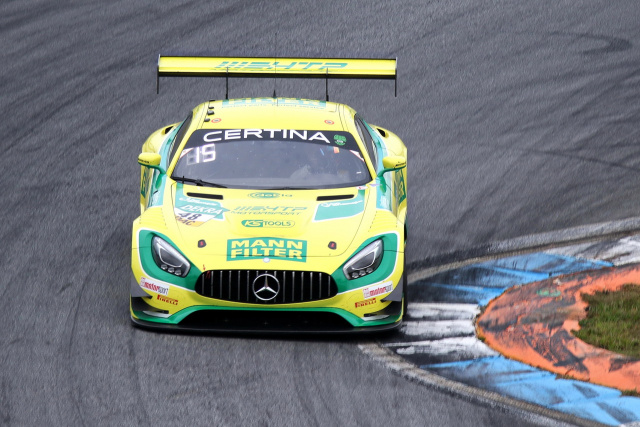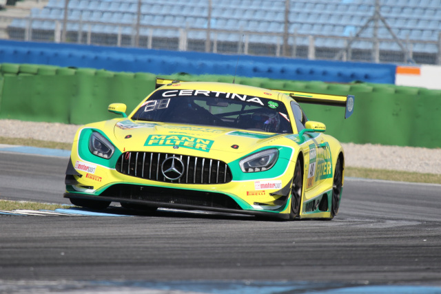 Der erste Wertungslauf des Finalwochenendes des ADAC GT Masters 2017 auf dem Hockenheimring Baden-Württemberg hat für das Mercedes-AMG Team HTPMotorsport einen enttäuschenden Verlauf genommen. Nach einem turbulenten Rennen verpassten Indy Dontje (24, Alkmaar/NL) und Marvin Kirchhöfer (23, Leipzig) im Mercedes-AMG GT3 mit der Startnummer 48 als Elftplatzierte die Punkteränge nur um drei Zehntelsekunden. Zunächst musste der von Startplatz 12 aus losgefahrene Dontje mit der „MANN-FILTER-Mamba“ in die Wiese, um einer Kollision auszuweichen, und verlor viele Positionen. Dann profitierte man vom folgenden Rennabruch: Nachdem noch keine komplette Runde absolviert war, wurde das Feld gemäß Reglement wieder in der Reihenfolge des Qualifyings aufgestellt.