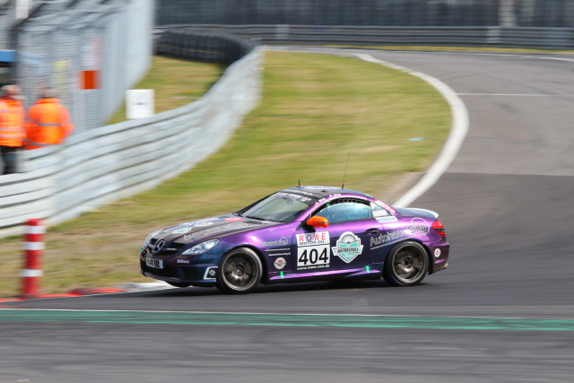 Ein Exot im großen Teilnehmerfeld ist der Mercedes-Banz SLK von Motorsport Sing. Das im auffälligen Flopflop-Design lackierte Fahrzeug ging in seiner Klasse V6 ohne Konkurrenz an den Start und konnte mit dem Vater/Sohn-Gespann Eugen und Bertin Sing am Steuer die Renndistanz von vier Stunden ohne Probleme abspulen.