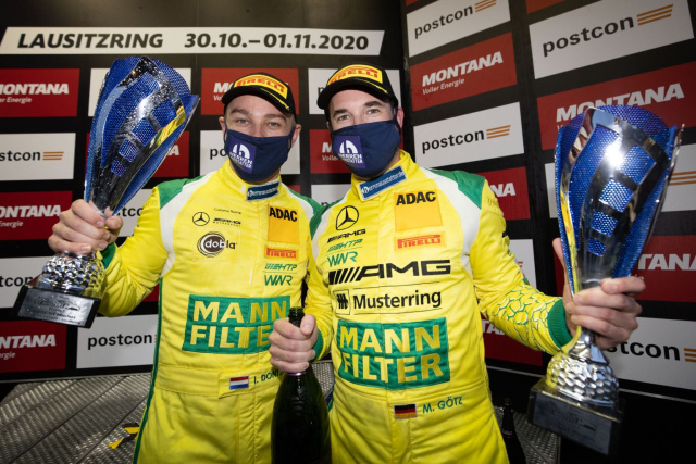 Vor der Saison galten sie als Titel-Kandidaten im ADAC GT Masters: Maximilian Götz und Indy Dontje in ihrer MANN-FILTER Mamba. Dann ging alles schief und die beiden Piloten konnten nie das zweifellos vorhandene Potenzial aus der widerspenstigen Giftschlange herausholen. Auf dem Lausitzring lief nun alles wie am Schnürchen und mit den Rängen zwei und fünf holte man das beste Ergebnis der Saison, woran auch die kniffligen Bedingungen sicher etwas "Schuld" hatten.
