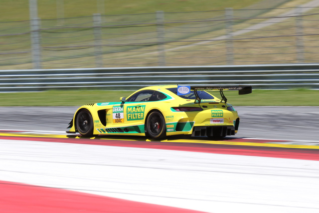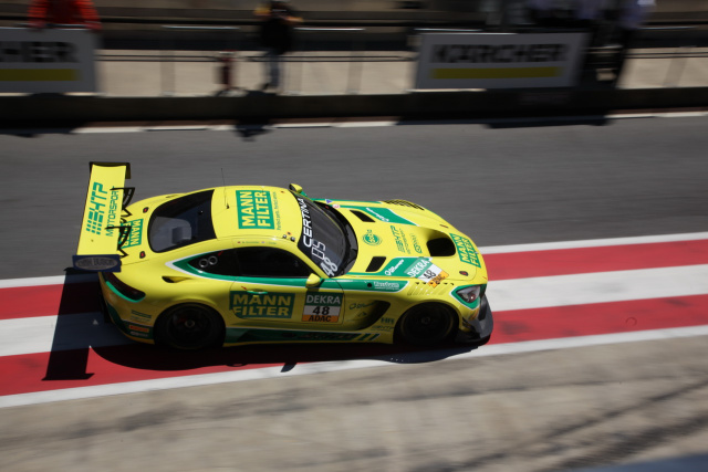 Dafür gab es im Sonntagsrennen mit P7 wertvolle Punkte für die Meisterschaft. Kirchhöfer hatte den gelb-grünen MANN-FILTER-Wagen mit der 48 für den siebten Platz qualifiziert, wurde aber in der ersten Ecke nach dem Start etwas eingeklemmt und büßte drei Positionen ein, von denen er sich eine bis zum Pflichtboxenstopp wieder zurückholte. Nach dem Fahrerwechsel machte Dontje mit starken Manövern zwei weitere Plätze gut und passierte die Ziellinie schließlich als guter Siebter. „Ich bin zufrieden“, konstatierte der Niederländer. „Unser Mercedes-AMG GT3 lag im Rennen hervorragend, ich konnte richtig attackieren und zwei Gegner überholen. Das hat einen Megaspaß gemacht! Nach dem Pech von gestern war es natürlich toll, hier nochmal in die Top-10 reinzufahren und gute Punkte zu sammeln. Und das auf einer Strecke, auf der unser Auto seine Stärken nicht voll ausspielen konnte. Umso mehr freue ich mich schon jetzt auf mein Heimspiel in Zandvoort!“