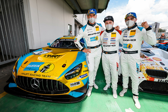 Der fünfte Lauf der Nürburgring-Langstreckenserie, der um zwölf Uhr gestartet wurde und auf vier Stunden angesetzt war, fuhr Patrick Assenheimer den Start-Stint und konnte sich in einer hart umkämpften Anfangsphase auf Platz vier einsortieren. Nach rund einer Rennstunde übergab Assenheimer das Lenkrad an Teambesitzer Hubert Haupt. Der Münchner zeigte beeindruckende Kämpferqualitäten und machte von Platz sechs kommend, nach dem planmäßigen Boxenstopp, vier Positionen gut und befand sich damit auf Podiumskurs. Nach gut zwei Rennstunden und 15 Runden über die Nürburgring Nordschleife stand der zweite Boxenstopp für den Mercedes-AMG GT3 vom Haupt Racing Team Bilstein an.