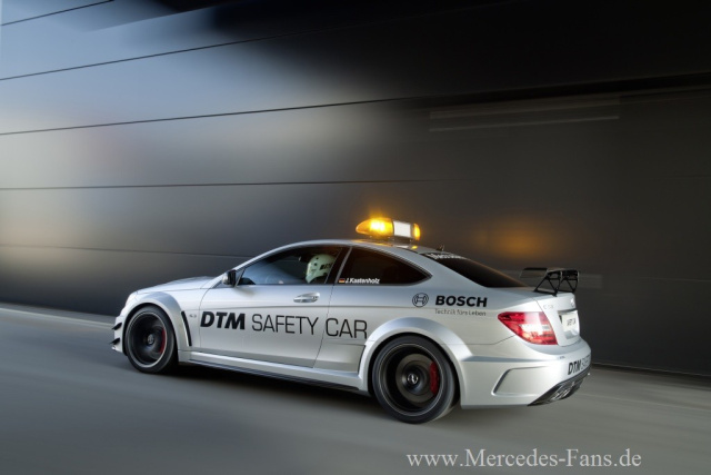 In der DTM-Saison 2012 geht nicht nur das neue spektakuläre Mercedes-AMG C-Coupé an den Start, auch das DTM Safety Car wird Aufsehen erregen: Ab sofort sorgt das C 63 AMG Coupé Black Series in der populärsten Tourenwagen-Serie der Welt für Sicherheit. Mit einer Höchstleistung von 380 kW (517 PS) ist der Zweisitzer die stärkste C-Klasse aller Zeiten. Die Deutsche Tourenwagen-Masters beginnt am 29. April 2012 auf dem Hockenheimring in Baden-Württemberg. Über den Einsatz des Safety Cars entscheidet der Deutsche Motorsportbund (DMSB), der im Rahmen des DTM-Reglements die Durchführung und Einhaltung der Sicherheit sowie die sporthoheitlichen Funktionen übernimmt. Das von Rennfahrer Jürgen Kastenholz (44) gefahrene C 63 AMG Coupé Black Series Safety Car hat die Aufgabe, bei gefährlichen Situationen wie extremen Wetterbedingungen, Unfällen oder sonstigen Zwischenfällen maximale Sicherheit für Rennfahrer, Zuschauer und Streckenposten zu gewährleisten. Nach einem Funkspruch der Rennleitung setzt sich das Safety Car an die Spitze des DTM-Feldes und führt es so lange um die Rennstrecke, bis wieder ein normaler Rennverlauf hergestellt werden kann.