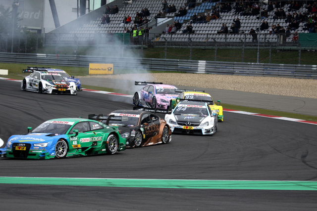 In der Folge konnten Edoardo Mortara und Pascal Wehrlein Druck auf den drittplatzierten Bruno Spengler ausüben und ihn schließlich überholen. Spenglers Auto wurde dabei beschädigt, weshalb er deutlich langsamer wurde und die hinter ihm fahrenden Piloten aufhielt. Daraufhin bekam Maxi Götz, mittlerweile an fünf liegend, mächtig Druck von Mike Rockenfeller im Audi, der in einer Fast-Kollision in der letzten Schikane gipfelte.