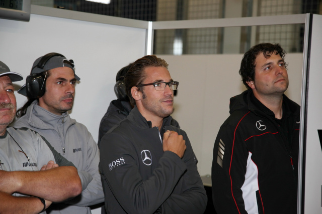 Das spannende Rennen verfolgte er in der Box von HP Racing, wo sein Idol Bernd Schneider ebenfalls einen SLS AMG GT3 pilotierte. Dabei fieberte er mit seinem alten Weggefährten Asch, der in diesem Jahr in seinem Zakspeed-Mercedes wieder um die Meisterschaft fährt und am Nürburgring sein 100. GT-Masters-Rennen in Angriff nahm.