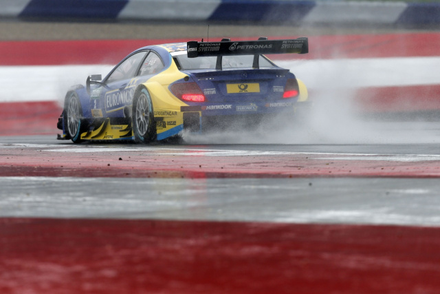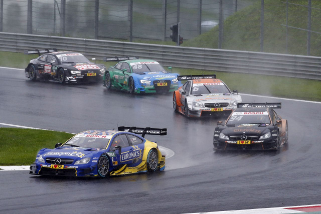 Robert Wickens (SILBERPFEIL Energy Mercedes-AMG C 63 DTM) und Pascal Wehrlein (gooix Mercedes-AMG C 63 DTM) lagen auf der letzten Runde auf Punktekurs, als sie von Audi-Pilot Timo Scheider in Folge eines skandalösen Funkspruchs seines Teams, "Timo, schieb ihn raus!"" absichtlich ins Kiesbett geschoben wurden und ausschieden. Wehrlein verlor dadurch wertvolle Punkte im Meisterschaftskampf gegen Audi-Fahrer Matthias Ekström, der das Rennen gewann und nun 17 Punkte vor dem Gesamtdritten Wehrlein liegt. Vor dem zweiten Rennen in Spielberg führte Wehrlein die Fahrerwertung mit acht Punkten Vorsprung an. Insgesamt sahen 52.000 Zuschauer am gesamten Wochenende den zehnten Saisonlauf des Jahres. Das Rennen fand bei schwierigen Wetterbedingungen statt und musste wegen starken Regens hinter dem Safety Car gestartet werden. Daniel Juncadella (PETRONAS Mercedes-AMG C 63 DTM) stellte sein Auto wenige Minuten vor dem Rennende vorzeitig ab.