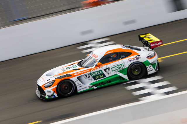 Doch schon nach der ersten Kehre zu Rennbeginn sortierte sich die Spitze gänzlich neu: Ellis fand mit dem Mercedes-AMG GT3 #57 vom Mercedes-AMG Team WINWARD einen Weg durch das dichte Getümmel und schob sich auf den ersten Platz. Auch Götz machte eine Position gut und übernahm in Runde sieben den zweiten Platz, nachdem er den Meisterschaftsführenden überholen konnte. Drei Runden später passierte der gebürtige Franke auch seinen Markenkollegen Ellis und kontrollierte das Rennen auf seiner Heimstrecke fortan von der Spitze. Ellis, der an diesem Tag seinen 29. Geburtstag feierte, hatte nach einem Drittel der Renndistanz allerdings Pech: Auf Platz zwei liegend wurde sein Fahrzeug mit der Startnummer 57 von einem Kontrahenten getroffen, drehte sich und fiel um einige Positionen zurück.