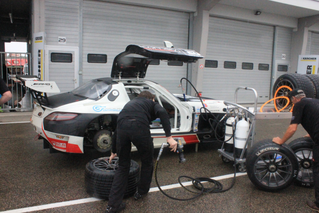 Im ersten Rennen am Samstag Nachmittag ging Mario Hirsch mit dem Mercedes-Benz SLS AMG GT3 von der Pole Position ins Rennen und konnte die gute Position auch beim Start behaupten. Runde für Runde fuhr er einige Zehntel schneller als der zweitplatzierte Becker und baute seinen Vorsprung aus. Von weiter hinten kam dann allerdings Eddy Kamm im überlegenen DTM-Auto immer näher und zog letztendlich an Hirsch vorbei. Gesamtplatz eins war damit zwar leider dahin, in der Klasse lag Hirsch allerdings weiterhin vorne.