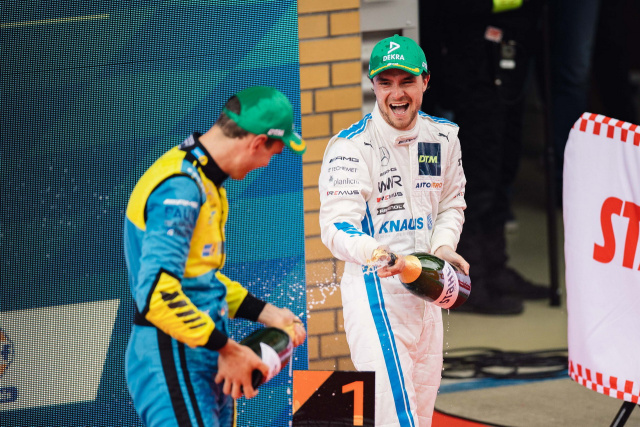 Beim Rennstart gelang es dem Österreicher jedoch nicht, seine Spitzenposition erfolgreich zu verteidigen. Der Pilot vom Mercedes-AMG Team WINWARD bog als Zweiter in die überhöhte erste Kurve ein, die von der DTM in diesem Jahr exklusiv befahren wird. Nach einem frühen Boxenstopp musste Lucas Auer außerdem seinen Markenkollegen Luca Stolz in der Startnummer 4 des Mercedes-AMG Teams HRT ziehen lassen. Am Ende fuhr Lucas Auer als Dritter über die Ziellinie und eroberte mit diesem erneuten Podestplatz zumindest für eine Nacht die Führung in der Fahrermeisterschaft.