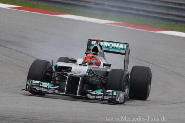 Was für ein Auftakt zum F1 GP in China! Nico Rosberg und Michael Schumacher starteten mit den Plätzen 2 und 3 in das dritte Rennwochenende der Saison in Schanghai. Rosberg fuhr 14 Runden und erzielte eine Bestzeit von 1:38.116 Minuten. Altmeister Michael drehte ebenfalls mit seinem Mercedes Silberpfeil 14 Umläufe auf dem 5,451 km langen Kurs und belegte in einer Zeit von 1:38.316 Minuten Position 3. Insgesamt legten die MERCEDES AMG PETRONAS Fahrer 28 Runden respektive 152,628 Kilometer zurück.