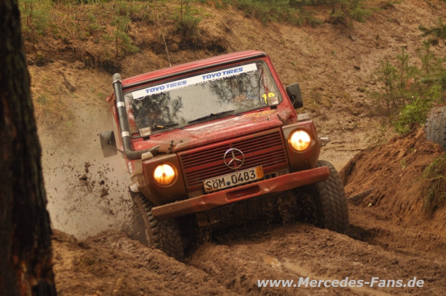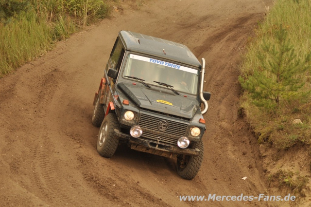 Ralf Berlit im Victory Jeep V8 One war ohne Chance, nur eine Runde wurde über das ganze Wochenende gewertet - sein "blaues Ungetüm" wollte einfach nicht so wie der Chef. Dafür kam Andreas Lübke im Mercedes G36 des Vorjahressiegers nach vorne, mit Beifahrer Uwe Jurzok liess man den G heile und fuhr verdient auf Platz 4.