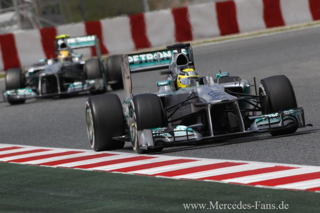 Die Reifen haben wieder einmal einen Formel 1 Grand Prix entschieden. Die beiden Mercedes-Benz Silberpfeile, welche beim Grand Prix in Spanien von Platz 1 und 2 ins Rennen gingen, konnten die Position wegen des erhöhten Reifenverschleißes nicht halten. Nico Rosberg und Lewis Hamilton mussten ihr Tempo während des Rennens drosseln. Formel 1 verrückt: Die Silberpfeile haben den Speed um ganz voprne an die Spitze zu fahren, müssen aber langsamer fahren. Und so fiel Nico Rosberg nach seinem Start von der Pole Position im Rennen auf den sechsten Rang zurück. Lewis Hamilton beendete den fünften Saisonlauf vor den Toren Barcelonas auf dem zwölften Rang.