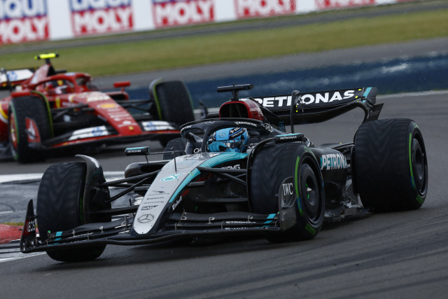 - Der anfängliche Regen kam und ging, bevor ein weiterer Regenschauer einen Wechsel auf die Intermediate-Reifen erforderlich machte. Das Team holte beide Fahrer gleichzeitig an die Box, wonach Lewis und George auf den Plätzen zwei und vier wieder auf die Strecke gingen.
