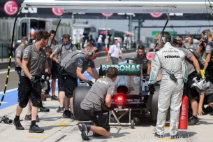 Am Donnerstag hatten wir orakelt, dass es wohl einmal mehr an den Riefen liegen wird, ob Mercedes punktet oder nicht. Diesmal waren die Pirelli Pneus perfekt. Obwohl Mercedes als einziges Team im Vorfeld nicht testen durfe - die Strafe für die Silverstone-Testfahrten - stellte Hamilton seinen Silberpfeil auf der Pole Position ab. Er blieb auch cool, als das Thermometer über 40 Grad im Schatten kletterte. Im Boliden dürfte es noch heißer gewesen sein, aber diesmal sollten auch die Reifen halten. Vettel biß sich an Kimi Raikönnen auf der Langweilerstrecke Hungaroring, auf der Überholmanöver Seltenheitswert haben, die Zähne aus und musste sich mit einem dritten Platz begnügen. Noch enttäuschender verlief das Rennwochenende für Nico Rosberg. Der Wahl-Monegasse konnte nach 65 Runden Feierabend machen. Motorschaden.