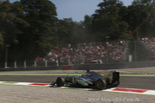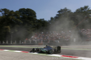 Die Mercedes-Werksfahrer Nico Rosberg und Lewis Hamilton beendeten den Großen Preis von Italien in Monza auf den Positionen sechs und neun. Hamilton hatte auf seinem ersten Satz Prime-Reifen einen schleichenden Plattfuß vorne rechts und musste in Folge dessen in Runde 13 vorzeitig an die Box kommen. Nicos Boxenstopp war mit einer Gesamtdurchfahrtszeit von 24.079 Sekunden der schnellste des Rennens.