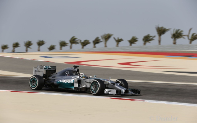 Am ersten Testtag der Formel 1 während der Saison auf dem Bahrain International Circuit fuhr Rosberg die schnellste Zeit. Einen Tag später tat es ihm der Lewis Hamilton gleich. Der Mercedes-Benz Werksfahrer fuhr seine schnellste von 120 Runden in 1:34.136 Minuten. Keiner war an diesem Tag schneller unterwegs als der Silberpfeilpilot.