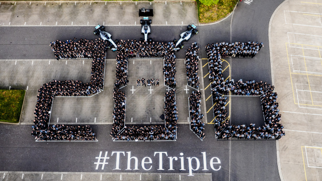 Mit dem dritten aufeinanderfolgenden Gewinn der FIA Formel 1-Konstrukteurs-Weltmeisterschaft betritt die Marke mit dem Stern Neuland. Nach den beiden Erfolgen in den Jahren 1954 und 1955 erzielte sie nun in der Hybrid Formel 1-Ära ein außergewöhnliches Triple. Mit 15 Siegen, 28 Podestplätzen, 16 Pole Positions und 10 schnellsten Runden aus 17 Rennen sammelte die Mercedes-Benz PU106C Hybrid Power Unit in dieser Saison bislang 50% aller möglichen WM-Punkte. Dabei führte sie 81% aller Rennrunden an. Der Mercedes-Benz F1 W07 Hybrid fuhr seinerseits 35% aller WM-Zähler ein und führte ebenfalls 81% der Rennrunden an. Um ein weiteres phänomenales Silberpfeil-Jahr zu ehren, schlossen sich die Einsatzfahrer Lewis Hamilton und Nico Rosberg sowie die Teamführung den WM-Feierlichkeiten in Brixworth und Brackley an.