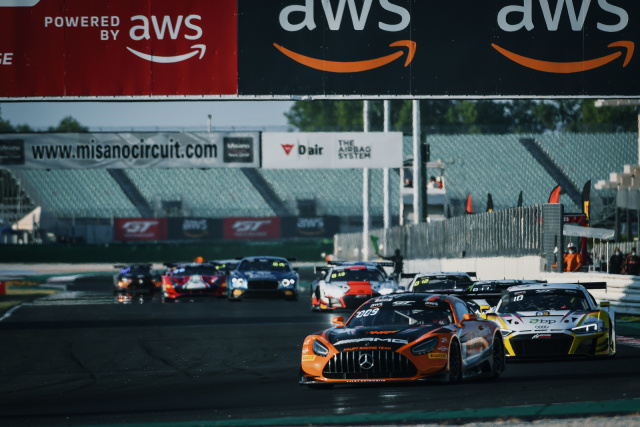 Nach dem für Mercedes-AMG Motorsport erfolgreichen Langstreckenauftakt in Imola wechselte die GT World Challenge Europe an diesem Wochenende auf die Sprint-Distanz. Auf dem 4,226 Kilometer langen Misano World Circuit standen drei jeweils einstündige Wertungsläufe auf dem Programm. Beim ersten Rennen am Samstagabend hatten die Fahrer neben heißen Temperaturen auch noch mit der tiefstehenden Sonne zu kämpfen. Ungeachtet dessen zeigte Luca Stolz im Mercedes-AMG GT3 #4 vom Customer Racing Team HRT einen furiosen Start, der ihn vom neunten Rang vier Plätze nach vorne katapultierte. Nach dem Fahrerwechsel griff Maro Engel weiter an und eroberte den vierten Rang. Eine Safety-Car-Phase brachte ihn kurz vor dem Ende noch einmal in Schlagdistanz zu den Podiumsplätzen, doch nach dem Re-Start konnte Engel keinen Angriff mehr setzen, so dass die #4 von HRT das Rennen als bester Mercedes-AMG GT3 auf dem vierten Platz beendete. Mit dem achten Platz ebenfalls in die Top-Ten fuhr der von P14 gestartete Mercedes-AMG GT3 #88 (AKKA ASP Team) mit Startfahrer Timur Boguslavskiy und Raffaele Marciello.