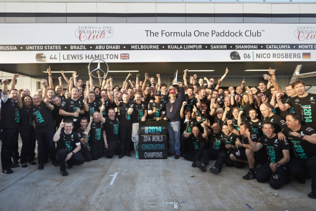Es erfüllt uns mit Stolz und großer Zufriedenheit, zum ersten Mal mit einem Silberpfeil die FIA Formel 1 Konstrukteurs-Weltmeisterschaft gewonnen zu haben. Dieser Erfolg ist das Ergebnis vieler Jahre harter Arbeit gepaart mit großem Einsatz und hervorragenden Ingenieursleistungen. Für einen Hersteller wie Mercedes-Benz ist es von besonderer Bedeutung, dies in einem Jahr des technologischen Umbruchs zu erreichen. Das neue Reglement für die Saison 2014 gab uns die Möglichkeit, die technische Fachkompetenz von Mercedes-Benz auf einer weltweiten Bühne zu demonstrieren. Unsere Ingenieure haben nicht nur die leistungsstärkste und effizienteste Hybrid Power Unit entwickelt, sondern auch die intelligentesten Lösungen für unseren W05 Hybrid Rennwagen. Mit 13 Siegen aus bislang 16 Rennen fällt unsere Leistung in diesem Jahr getreu dem Motto unserer Marke Mercedes-Benz aus: Das Beste oder nichts. Meine Glückwünsche für diese Leistung gelten unserem Formel 1-Team in Brackley und Brixworth, unseren Fahrern Nico Rosberg und Lewis Hamilton und jedem Einzelnen meiner Kollegen, der zu diesem Erfolg beigetragen und unsere Mercedes-Benz Silberpfeile unterstützt hat.