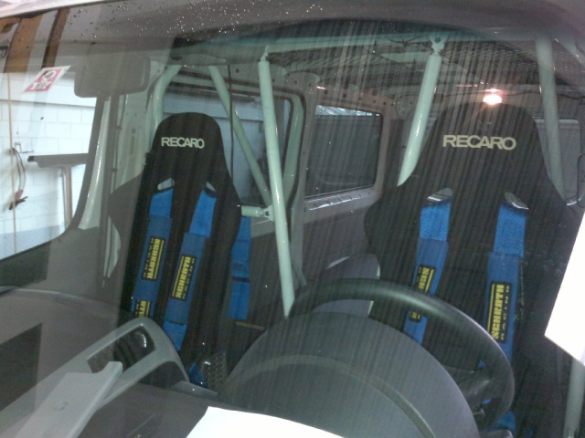 Zum Schutz des Motors und Kraftstoffbehälters wurde ein Unterfahrschutz verbaut. Die Insassen werden durch einen eingeschweißten Überrollbügel im Falle eines Crashs geschützt. Recaro-Schalensitze und Drei-Punkt-Schroth-Sicherheitgurte umklammern die Pilotinnen, ein Feuerlöschsystem rundet das Rallye-Sicherheitspaket perfekt ab.