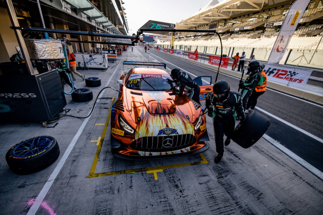 Das erste Renndrittel der Gulf 12 Hours am Sonntag war vor allem von den Strategieentscheidungen der Favoriten geprägt. Innerhalb der ersten vier Runden absolvierten alle fünf Pro-Fahrzeuge einen taktischen Stopp und fielen zunächst ans Ende des Feldes zurück. Den erhofften Vorteil machten im Anschluss zwei Gelbphasen zunichte, sodass die Teams gefordert waren und sich auf der Strecke nach vorne arbeiten mussten. Die #99 vom Mercedes-AMG Team GruppeM kam unter Full Course Yellow ein weiteres Mal an die Box und geriet dadurch zwischenzeitlich eine Runde in Rückstand.