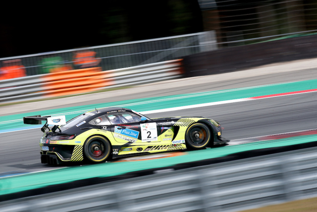 Kurze Aufregung gab es in der engen Spitzkehre vor der Gegengeraden als Gentlemen-Driver Thomas Langer in der Hitze der Startphase die Kontrolle über seinen Mercedes-AMG GT3 verlor. Das restliche Feld konnte zum Glück ausweichen und Langer startete daraufhin eine Aufholjagd, die ihm den Klassensieg in der AM-Wertung bringen sollte.