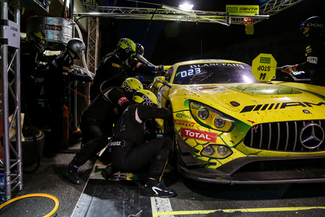 Von den insgesamt 13 gestarteten Mercedes-AMG GT3 befinden sich noch zehn im Rennen. Nach dem frühen Unfall-Aus der #89 (AKKA ASP Team) am Samstag musste in der Nacht zum Sonntag auch die #44 (STRAKKA Racing) nach eine technischen Defekt das Rennen aufgeben, so dass das GT-Debüt des ehemaligen Formel-1-Piloten Rubens Barrichello (BRA) vorzeitig beendet war. Auf dem dritten Platz des Silver Cups liegend fiel zum Ende der Nacht die #90 AKKA ASP Team nach einer unverschuldeten Kollision aus.