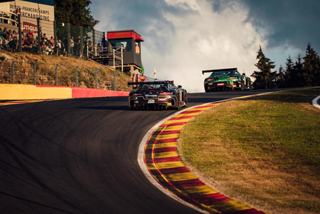 Bei der 70. Auflage der Total 24 Hours of Spa steht Mercedes-AMG vor einer heißen Schlussphase. Nach 350 Runden auf dem legendären Circuit de Spa-Francorchamps befinden sich mit der #4 des Mercedes-AMG Team BLACK FALCON und der #88 des Mercedes-AMG Team AKKA ASP zwei Mercedes-AMG GT3 in aussichtsreicher Position im Kampf um das Podium. In der Klasse Pro-AM behauptet der Mercedes-AMG GT3 #42 von STRAKKA Racing seine Führung.