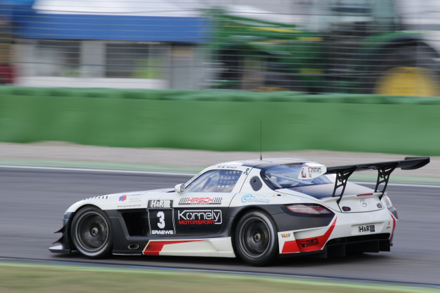 In Hockenheim, wo die STT Ende September wieder im Rahmen der ADAC GT Masters startete, setzte Kornely Motorsport erstmals den neuen Mercedes-AMG GT3 im Rennbetrieb ein. Dieser Einsatz war als Test unter Rennbedingunge gedacht. Prominenter Testpilot: Langstreckenspezialist Kenneth Heyer. Kenneth hat als Zakspeed-Pilot beim 24h-Rennen auf dem Nürburgring jede Menge Erfahrungen mit dem neuen GT3 gesammelt und konnte das Fahrzeug perfekt abstimmen. Bereits in den Qualifyings holte er sich jeweisl die Pole Position in seiner Klasse, gefolgt von Mario Hirsch im älteren SLS GT3.