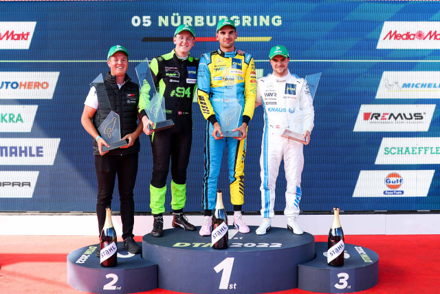 Luca Stolz fuhr souverän seinem ersten Karrieresieg in der DTM entgegen. Die schnellste Runde des Rennens brachte dem Piloten vom Mercedes-AMG Team HRT außerdem einen zusätzlichen Meisterschaftspunkt ein. Lucas Auer konnte den Abstand auf Platz zwei zwar noch verkürzen, musste sich aber mit dem dritten Rang zufriedengeben. Maximilian Götz und Mikaël Grenier machten durch den Ausfall eines Konkurrenten noch je eine Position gut und überquerten die Ziellinie somit als Fünfter und Achter.