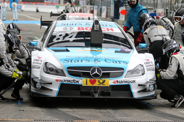 Während sein erstes DTM-Erlebnis in Hockenheim nicht die gewünschten Ergebnisse brachte, konnte er beim Finale seine großen Fortschritte in diesem Jahr unter Beweis stellen und an beiden Tagen mit guten Leistungen überzeugen. Dabei ging er, ähnlich wie Markenkollege Paul Di Resta, mit einem neuen Fahrzeug-Design an den Start. Motorhaube und Dach waren statt in mattgrau in einem auffälligen Petrol-Ton lackiert und warben für"Stars & Cars" - das Abschlussevent der Motorsportsaison in Stuttgart. Die Motorsportfans dürfen sich auf die Fahrer aus Formel 1 und DTM sowie auf ein abwechslungsreiches Programm mit echter Renn-Action freuen. Durch das neue Design und die knalligen Farben war sein Fahrzeug für die Fans viel besser zu erkennen. Fans hat Max mittlerweile in rauen Mengen, wie der traditionelle Fantreff in der Mercedes-Hospitality wieder einmal bewies. Dabei fällt auch auf, wieviel Zeit sich Max für seine Anhänger nimmt und wieviel Spaß er an diesen Dingen hat.