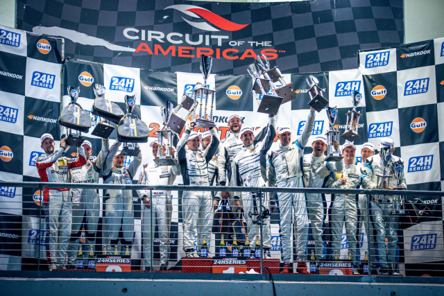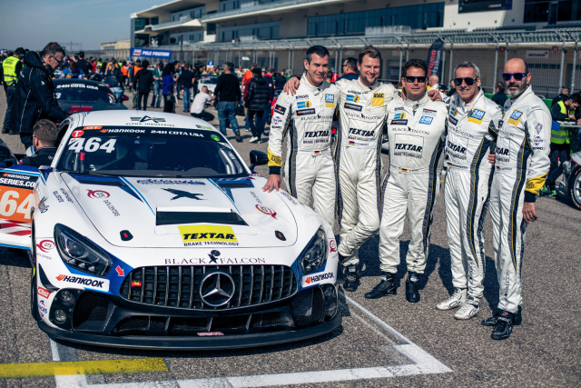BLACK FALCON wiederholt den Vorjahreserfolg beim 24-Stunden-Rennen auf dem Circuit of The Americas in Austin/Texas (USA) und sichert sich damit den zweiten Gesamtsieg bei der dritten Ausgabe des Rennens. Jeroen Bleekemolen (NL), Ben Keating (US), Felipe Fraga (BR) und Cooper MacNeil (US) dominierten mit dem Mercedes-AMG GT3 #4 das Rennwochenende von Beginn an und sicherten sich auf dem Weg zum Gesamtsieg die Pole-Position sowie die wichtige Führung am Ende der ersten Rennhälfte. Außerdem fuhr das Team aus Meuspath mit dem Mercedes-AMG GT4 #464 von Axel König, Norbert Schneider, Axel Sartingen, Daniel Schwerfeld und Alexander Böhm (alle DE) auf den zweiten Platz in der Klasse SPX, der nach einer fehlerfreien Vorstellung der gesamten Mannschaft mit dem hervorragenden achten Platz im Gesamtklassement einherging.