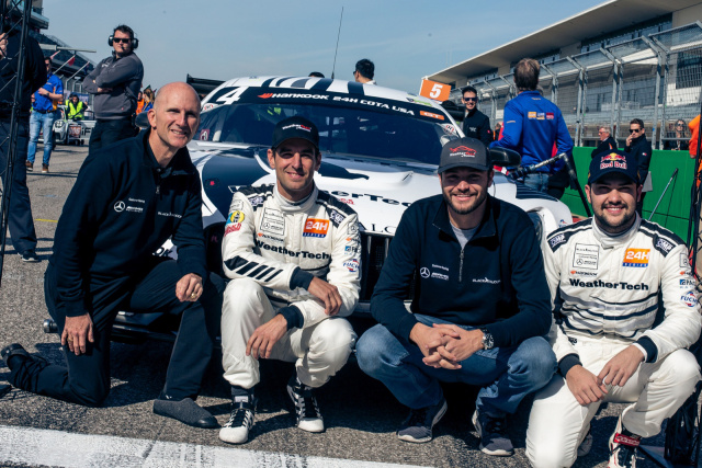 Die Crew des WeatherTech Mercedes-AMG GT3 #4 war bei der dritten Ausgabe des zweigeteilten 24-Stunden-Rennens das Maß der Dinge: Nach der zweitschnellsten Zeit im Freien Training am Freitagmorgen, erzielte Fraga mit dem BLACK FALCON AMG GT3 die schnellste Zeit im Qualifying und sicherte dem Team damit die Pole-Position. Auch im anschließenden Nachttraining behauptete sich das Quartett an der Spitze des Feldes und sicherte sich die zweite Bestzeit des Tages. Am Samstagmorgen startete das 30 Fahrzeuge starke Feld in den ersten Abschnitt (11h). Schnell entwickelte sich ein Kampf um die Führung, der in der ersten Rennhälfte für viel Rennaction sorgte. Bis zur geplanten Rennunterbrechung nach 11 Stunden fuhren Bleekemolen/Fraga/Keating/MacNeil einen wichtigen Vorsprung von einer Runde heraus, der beim Re-Start am Sonntagmorgen bestehen blieb. Trotz des komfortablen Polsters hielt das Team das Tempo in der zweiten Rennhälfte hoch und belohnte sich nach einer starken Leistung mit dem Gesamtsieg.