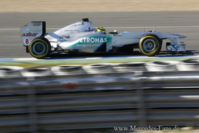 Nico Rosberg "Wir hatten eine sehr guten Start in unser Testprogramm. Wir testeten einige verschiedene Dinge unter guten Wetterbedingungen und lernten den 2012er Pirelli-Reifen besser kennen."