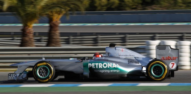 Nach seiner ersten Ausfahrt in diesem Jahr am Dienstagnachmittag, setzte Michael Schumacher die Wintertestfahrten in Jerez de la Frontera am Mittwoch fort. Der MERCEDES AMG PETRONAS Pilot erzielte in Südspanien die Tagesbestzeit von 1:18.561 Minuten und lag damit am Ende der Session über eine halbe Sekunde vor dem ersten Verfolger. Insgesamt fuhr der Kerpener 132 Runden, was auf dem 4,428 Kilometer langen Kurs einer Gesamtdistanz von 584 Kilometern entspricht