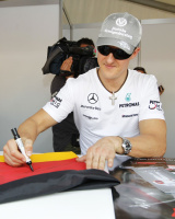 Michael Schumacher beim Autogramme-Schreiben für die deutschen Mercedes GP-Fans!