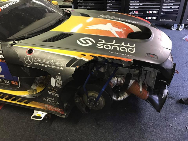 Für den auf Metzger folgenden Lokal-Matadoren Khaled al Qubaisi lief am Morgen dagegen leider alles schief. Nach einem Fahrfehler kam der Pilot der #2 zwar auf die Strecke zurück, wurde dabei aber von einem unschuldigen Lamborghini torpediert, was das bittere Ende für den bestplatzierten Mercedes-AMG GT3 zu diesem Zeitpunkt bedeutete. Die vordere Radaufhängung und die Karosserie waren schwer beschädigt, so dass sich eine Reparatur nicht mehr lohnte. Sehr schade für alle Beteiligten!