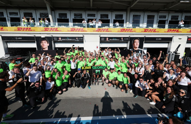 Was für ein Wochenende für das Mercedes-AMG Petronas Formula One Team: Beim Großen Preis von Kanada im Circuit Gilles Villeneuve feierte das Team seinen ersten Sieg der Saison – und das gleich mit einem Doppelpodium. George Russell beendete damit die Silberpfeil-Durststrecke, die Sieg seit dem Brasilien-GP 2022 anhielt und holte sich nicht nur die Pole-Position, sondern brachte nach 70 packenden Runden auch den Rennsieg ins Ziel. An seiner Seite: Der 18-jährige Kimi Antonelli, der sich mit einem bärenstarken dritten Platz erstmals in seiner noch jungen F1-Karriere auf dem Treppchen wiederfand.