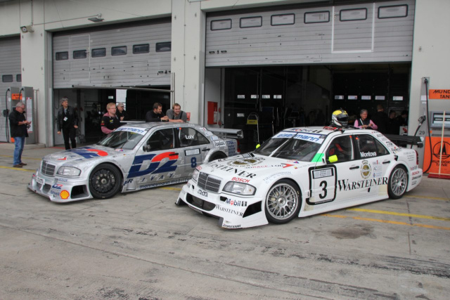Bühne des Mercedes Standes. Der 1946 in Dorfen, bei München geborene Jochen Maas fuhr ab 1988 für Sauber Mercedes Rennen und siegte auch in Le Mans 1989. Er bewegte im „Elefantenrennen“ zur Feier des Nürburgrings den Mercedes-Benz Typ SS (Supersport) W06 6 Zylinder mit 7,1 Liter Hubraum und 225 Kompressor Ps von 1928 in rot. Roland Asch, der 1950 in Altingen das Licht der Welt erblickte und ebenfalls ab 1988 erfolgreich für Mercedes in der DTM unterwegs war, pilotierte im gleichen Rennen den Mercedes S W06 in weiß mit geschlossenem Verdeck. Der Bonner Klaus Ludwig, Jahrgang 1949 fuhr ab 1989 fünf Jahre für das Mercedes AMG Team und erlangte 19 Siege. Maximilian Götz aus Ochsenfurt ist Baujahr 1986 und somit der jüngste der Mercedes Markenbotschafter. Durch seine Anwesenheit spannte Mercedes den Bogen von den frühen Kompressorfahrzeugen, über die Rennstars der 90er bis zur heutigen DTM.