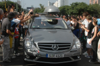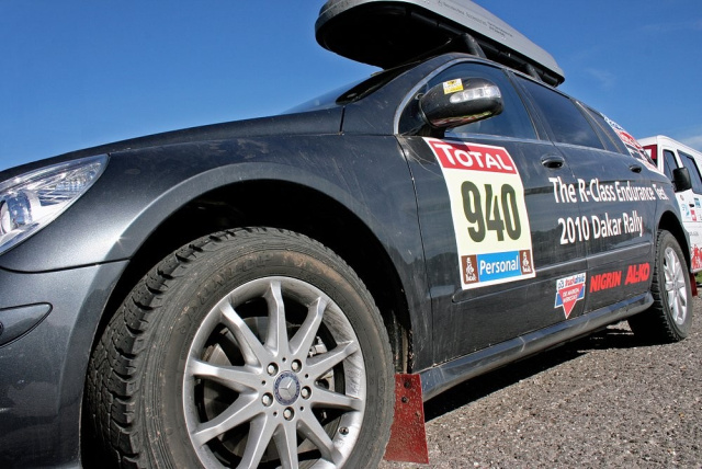 Nach dem sehr beeindruckenden Start mit 300.000 Zuschauern in Buenos Aires und weiteren 1,5 Mio auf dem Weg ins 320KM entfernte Colon haben sich unsere beiden R-Klassen schon bestens bewährt. Zum einem haben wir verschwenderisch viel Platz in den geräumigen Autos, zum anderen haben sie uns auch unter schwierigen Umständen ins Biwack gebracht. Denn gestern Nacht steckten mehrere Servicefahrzeuge in der schlammigen Biwackeinfahrt fest.