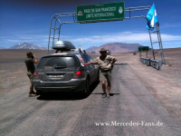 Unser Team überquerte mit der Mercedes R-Klasse den San Francisco Pass in den Anden. Das ist die Grenze zwischen Argentinien und Chile