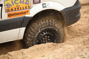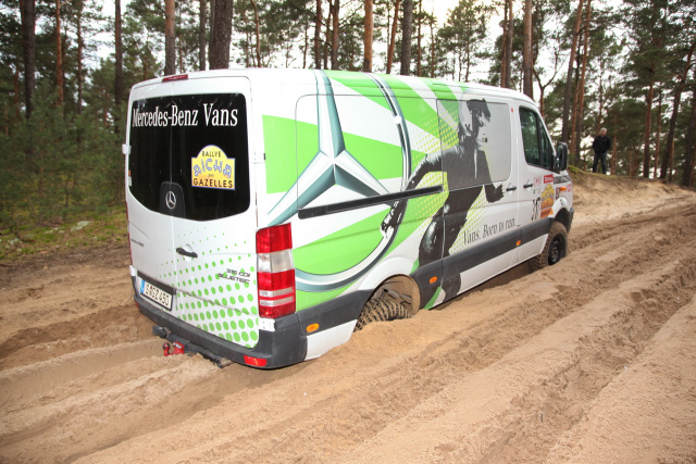Zunächst ging es für die größtenteils neu formierten Teams darum, die Fahrzeuge kennen zu lernen und ihr Verhalten im groben Gelände zu erforschen. Das "Senior"-Team mit Viola Hermann und Vanessa Wagner, die bereits im letzten Jahr die Rallye erfolgreich absolvierten, konnte hierbei wertvolle Tipps geben. Im Anschluss wurden praktisch alle Gemeinheiten, die das Gelände zu bieten hatte, unter die Räder der 4x4-Sprinter und -Vitos genommen. Hauptaugenmerk lag auf der Bewältigung von Tiefsand-Strecken, wie sie in der marokkanischen Wüste hauptsächlich anzutreffen sind.