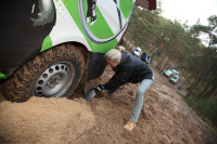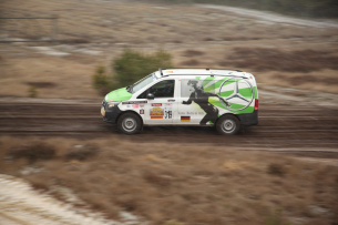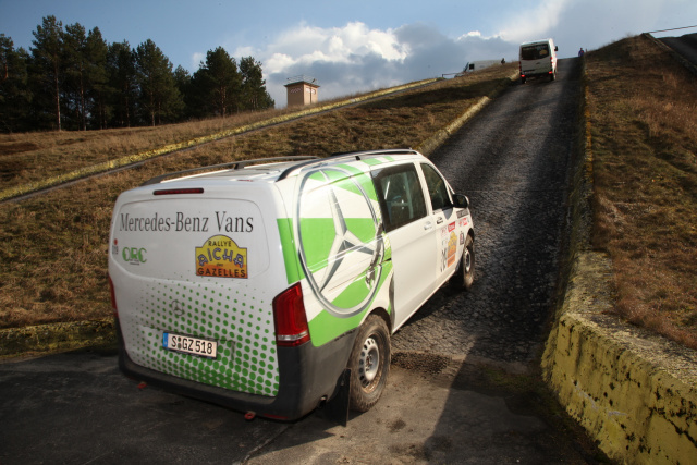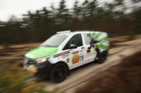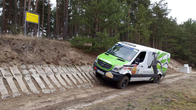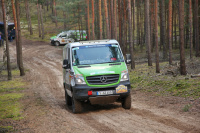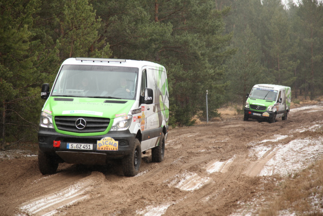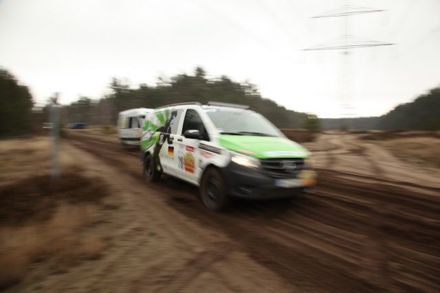 "Bereits am Mittwochmorgen machte sich ein Teil der Mercedes-Benz Gazellen zusammen mit dem Mercedes-Benz Vans Mechaniker Team auf den Weg von der Schwabenmetropole in Richtung Berlin. Auf der Fahrt konnten wir uns so schon etwas mit unseren Rallye-Sternen vertraut machen. Vom komfortablen Reisen, wie man das sonst von Mercedes-Benz gewöhnt ist, müssen wir uns erst einmal verabschieden. Stattdessen Schalensitze und -gurte, Überrollkäfig, Offroadfahrwerk und -bereifung. Die Fahrgeräusche sind dadurch um ein vielfaches lauter, aber daran hat man sich schnell gewöhnt und das Rallyefahrergefühl stellte sich schnell ein. An unserem 4x4 Vito, der letztes Jahr auf den zweiten Platz in der Crossover-Klasse gefahren wurde, müssen nur noch ein paar wenige Umbauten vorgenommen werden. Für das Fahrtraining war der Vito aber schon startklar.