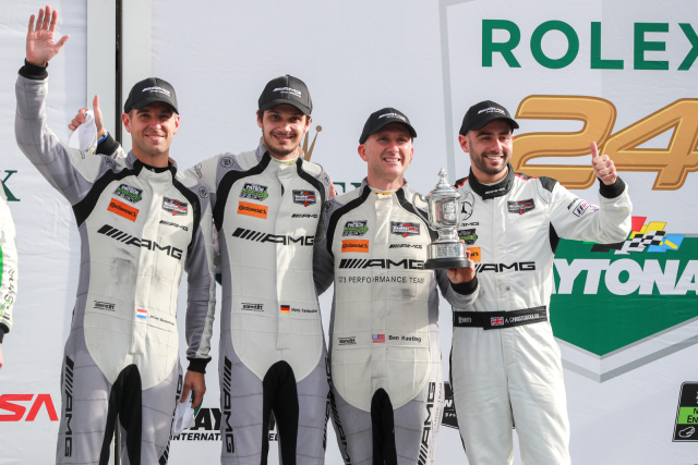 Beim Debüt auf das Podium: Mercedes-AMG Motorsport feiert einen gelungenen Auftakt in der IMSA WeatherTech SportsCar Championship. Beim Debüt in der wichtigsten nordamerikanischen Sportwagen-Serie erreicht das Riley Motorsports – Team AMG mit Adam Christodoulou (GBR), Mario Farnbacher (GER), Jeroen Bleekemolen (NED) und Ben Keating (USA) im traditionsreichen Rolex 24-Stunden-Rennen in Daytona einen dritten Platz in der GTD-Klasse mit dem Mercedes-AMG GT3, obwohl die Chancen nach dem Qualifying wegen einer ungünstigen BoP-Einstufung ziemlich schlecht standen!