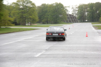 Uwe Pfaar zeigte eindrucksvoll wie man mit einem alten heckangetriebenen Mercedes zwischen den Pylonen auf Zeiten Jagd gehen kann