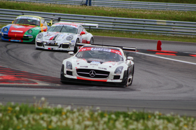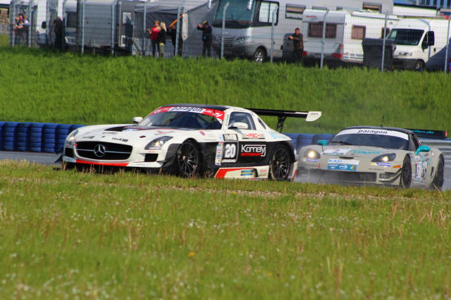 Das erste Rennen der STT kurz darauf begann vielversprechend für den Arnstorfer und sein Team Hirsch Tracksport by Kornely Motorsport, bekam jedoch kurz vor Rennenden eine unglückliche Wendung. Von der Pole Position gestartet und dann lange in Führung liegend, kam es drei Kurven vor Schluss zu einer unglücklichen Berührung mit dem SLS von Josef Klüber, nach der es am Ende nur noch auf Rang fünf reichte. Lange Zeit zum Trübsal blasen hatte das Team jedoch nicht, denn es stand immer noch das zweite DMV Rennen unter nassen Bedingungen auf der Agenda. Auch im Regen zeigte Mario Hirsch sein fahrerisches Können und belegte hinter dem Ferrari 458 Italia GT3 von Klaus Dieter Frers den zweiten Platz.